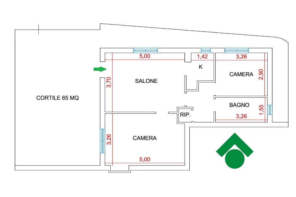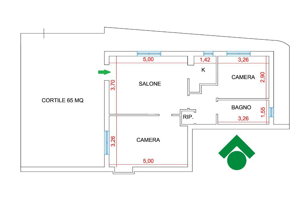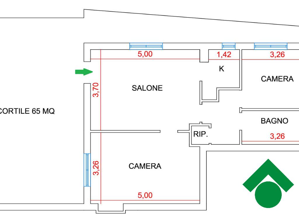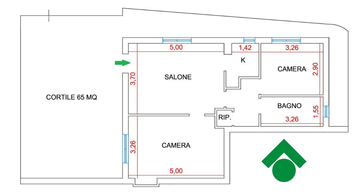 Internamente l’appartamento si apre su una comoda zona giorno con angolo cottura. La zona notte è composta da due spaziose camere matrimoniali. Il bagno è finestrato e dotato di doccia, mentre un pratico ripostiglio completa la distribuzione interna offrendo uno spazio utile per l’organizzazione della casa.