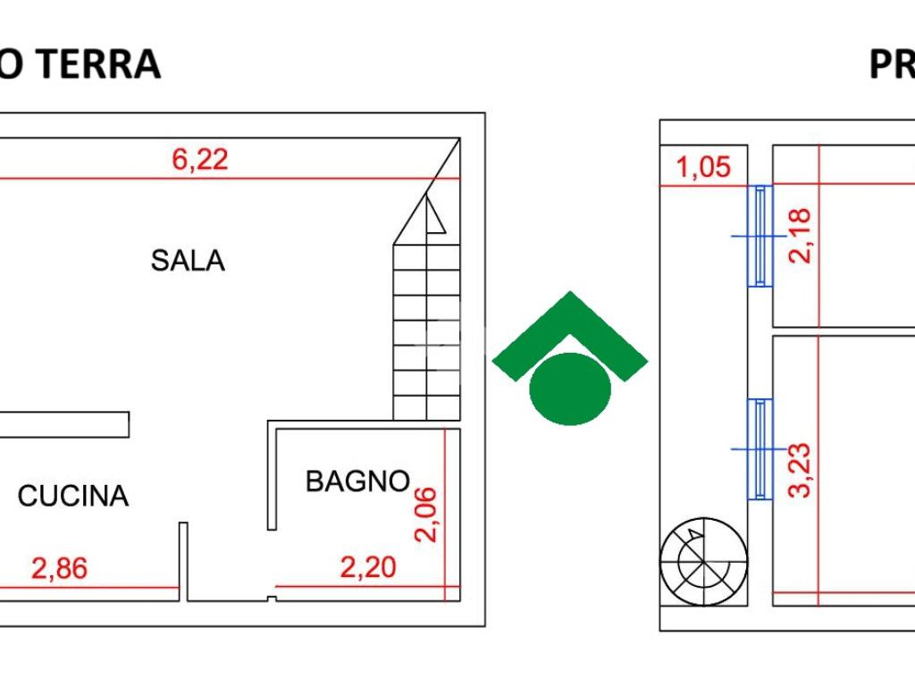 Salendo al primo piano, troviamo due camere da letto, entrambe dotate di porta-finestra che affaccia su un balcone. Il piano superiore include anche un bagno finestrato con doccia. Il balcone, inoltre, è collegato a un lastrico solare tramite una scala a chiocciola, offrendo così uno spazio ideale per momenti di relax all'aria aperta.